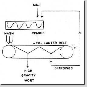 Trotz der schlechten Sudhausausbeute ist aber auch die Herstellung einer hochkonzentrierten Würze durch die Senkung des Verhältnisses von Hauptguß zu Schüttung auf 3:1 vorstellbar. Dies bereitet keine Probleme, jedoch bedarf es geringer Korrekturen des Maischeprogrammes: Die Verzuckerungszeit bei 70-72°C muß etwas verlängert werden, dafür wirken die proteolytischen Enzyme und die b -Amylase besser. Eine erhöhte Schüttung setzt aber eine ausreichende Kapazität der Abläutervorrichtung vorraus. (9).